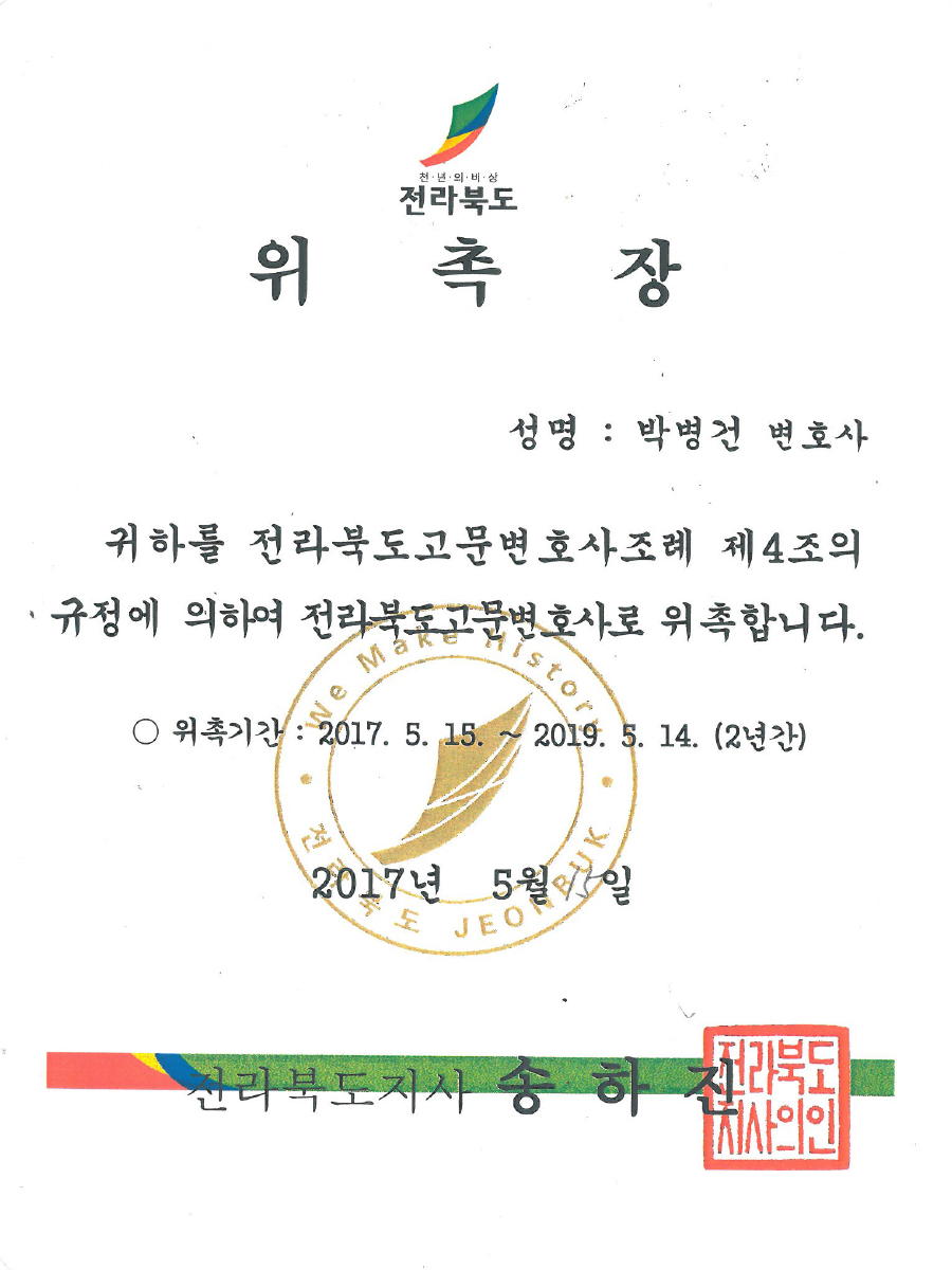 전주 박병건 변호사는 다양한 사선변호 및 국선변호를 진행해본 경험과 노하우, 그리고 실력을 바탕으로 언제나 여러분이 처해있는 상황에 맞는 최적의 변호를 해드리고 있습니다.